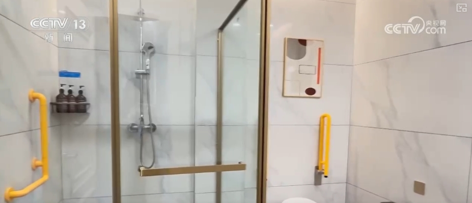 走在院区里,随处可见这样的施工场景。全院一共有15栋楼都在进行适老化升级改造,房间也都全部翻新了。来到药浴室,原来老旧的浴桶全部改成了时髦的水疗室,还新建了智能管道系统,熬好的中药汤剂能直接通过管道输送到各个房间,方便又卫生。